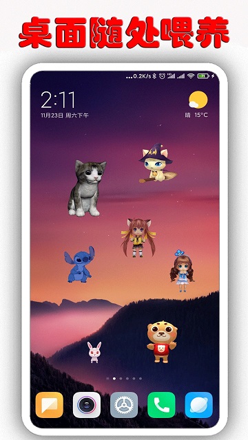 4、每次打开手机就可以玩萌宠也是一个不错的选择,创建在桌面上会看见他一直在灵活走动;