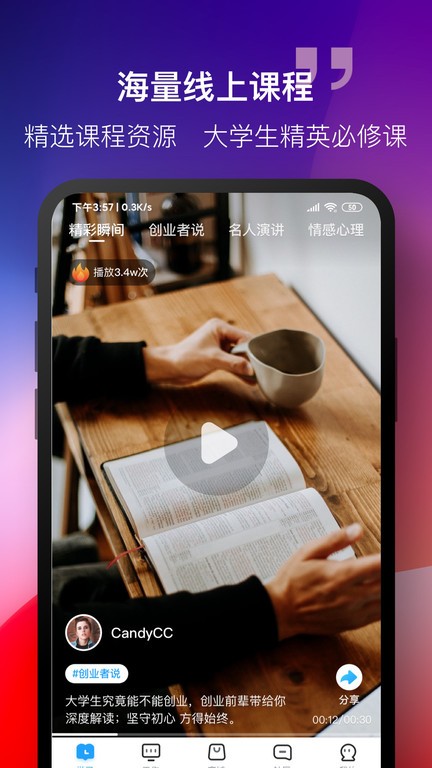 大学生成为精英的必修课。联合企业提供大学生满满的职场干货,可以学习到各项职业技能,直面职场的真实案例,提升大学生的职场实践能力。同时还有大量优质的课程内容,CEO的经验分享,引人入胜又发人深省的纪录片,无数好内容就在这里等着你。