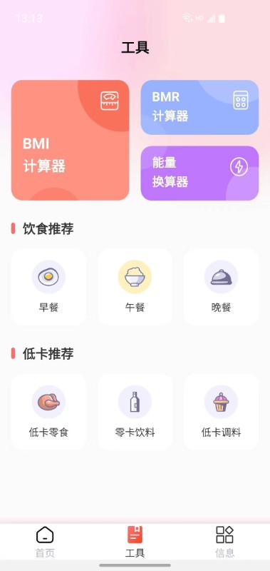 3、工具区配备多项实用计算功能,包括身体质量指数与基础代谢率等专业测算。