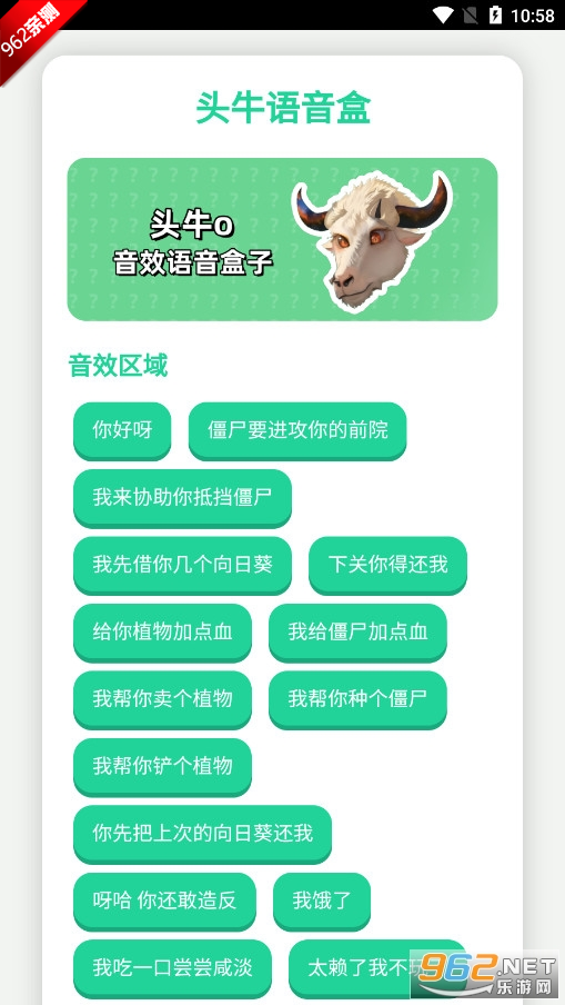 1、头牛o音效语音盒子,以b站up头牛o为原型制作,收录了他自制的植物大战僵尸游戏语音特效。