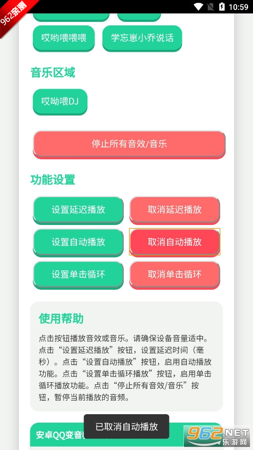 基础播放:在首页的“音效区域”或“音乐区域”浏览,点击你喜欢的音效或语音按钮即可播放。