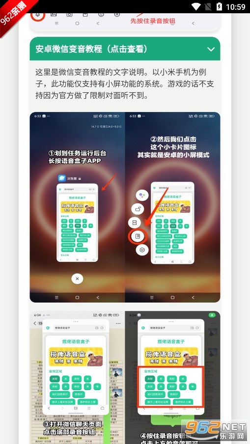 3、针对用户不同机型的变声使用需求,这里也有着相当详细的介绍,大家可参照使用在对应的社交平台上发布,完成最终的变声操作。