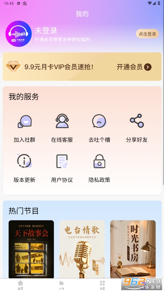 这app简直是声控的天堂!听周公子念情书真的会起鸡皮疙瘩,音效细腻到连翻书声都听得见~内容有深度又不无聊,睡前听一段超治愈。虽然部分明星专辑要VIP,但免费内容也很够挖。适合通勤党、失眠人士、以及任何想给耳朵做按摩的人——毕竟,谁不想爱豆在耳边给自己读故事呢?