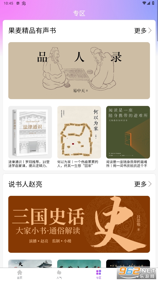 专区界面,按照类别,让大家可以自由挑选感兴趣的板块听书,欣赏音频