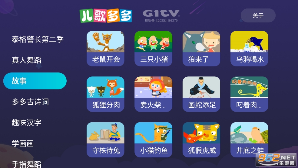 家有好动宝,成长要趁早!想为您的孩子提供一个内容健康、丰富多彩的视听天地吗?「儿歌多多TV版」正是为您和您的孩子量身打造的大屏专属应用!它汇集了海量优质的儿童内容,从经典儿歌到启蒙动画,从睡前故事到国学诗词,让家里的智能电视或电视盒子变成一座充满欢声笑语的“家庭亲子乐园”。