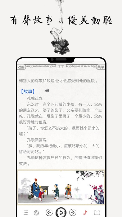 4、【界面】图文并茂,水墨风插画匹配正文大意,方便学习与理解。