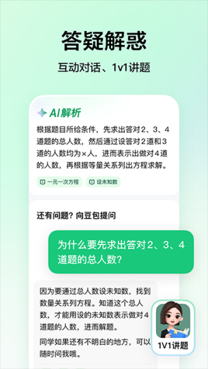 1、下载豆包爱学家长端app并登录账号,进入主界面后选择在线问答功能,输入问题即可获得智能解答和详细解析。