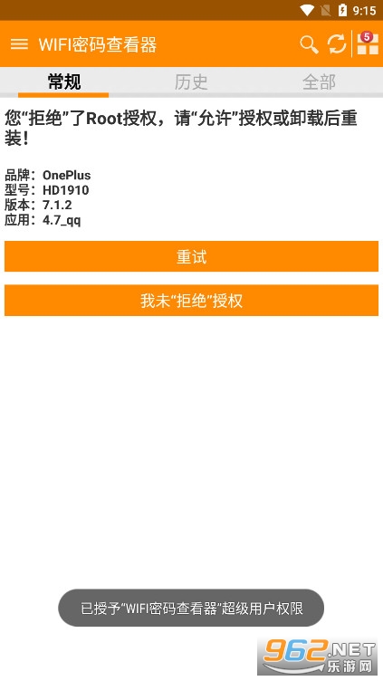 2、允许wifi密码查看器权限,同意授权写入手机内存;