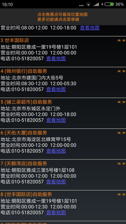 · 订票点信息,2265可以地图显示位置,可自动查找最近的订票点位置