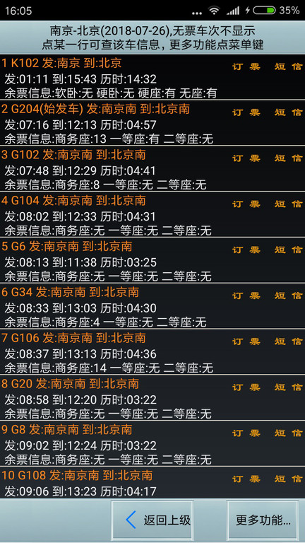 · 实时查询火车余票信息,与铁道部门实时一致,支持订票功能