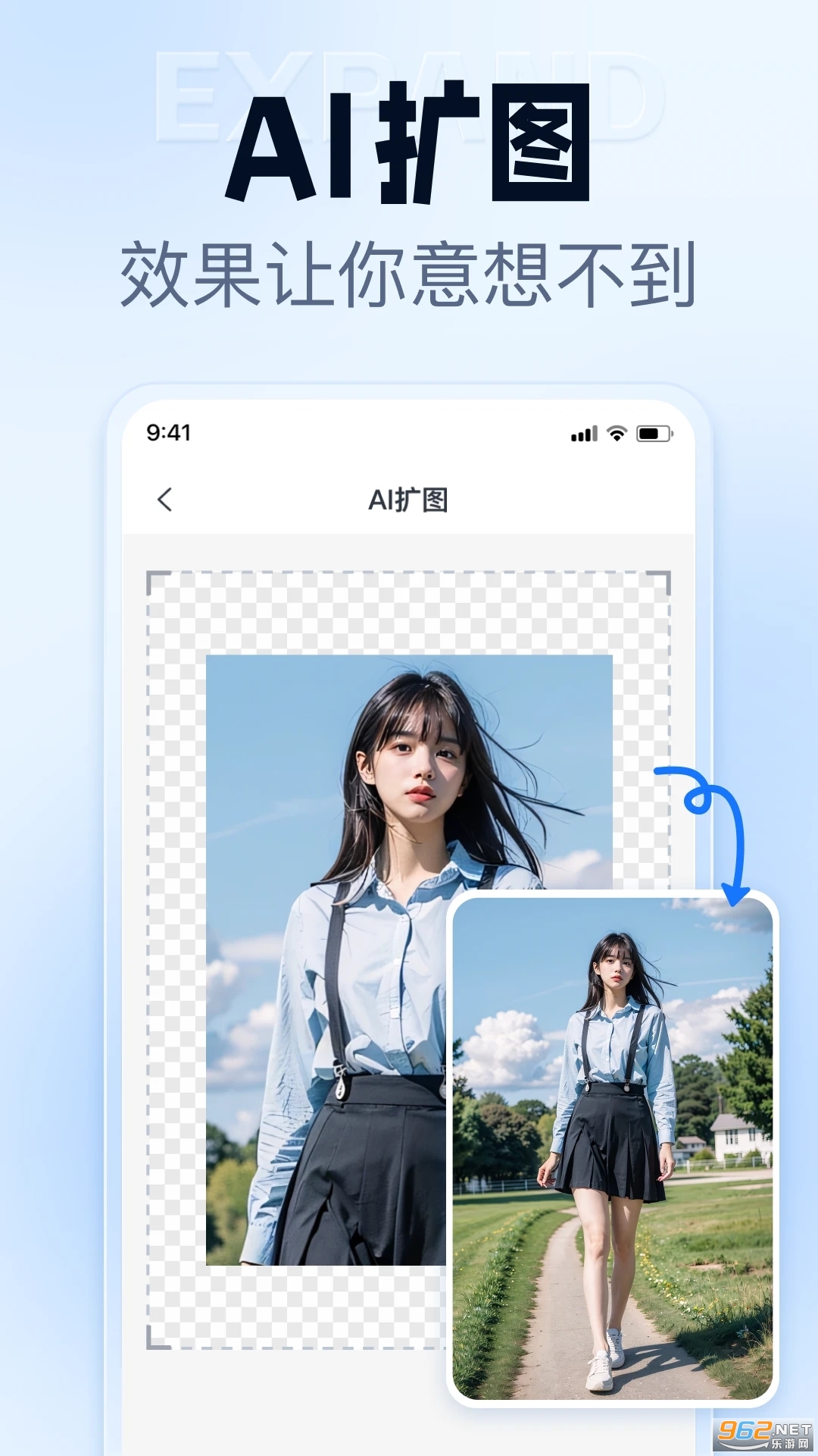 AI扩图,主要目的在于拯救废照片!它可让老照片、证件照、旅游照片等恢复原貌,变得更加美观。抠图改图王它是一款抠图修图类美化软件,里面囊括了超多修图功能和大量的美化特效整体操作十分方便,特别是“AI扩图”功能可以通过扩大比例的方式,从而轻松来实现AI扩图效果。