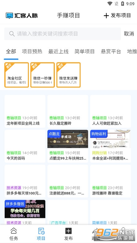 2、找项目:汇客人脉是一个项目手赚资源平台,你可以找到适合自己的手赚项目。