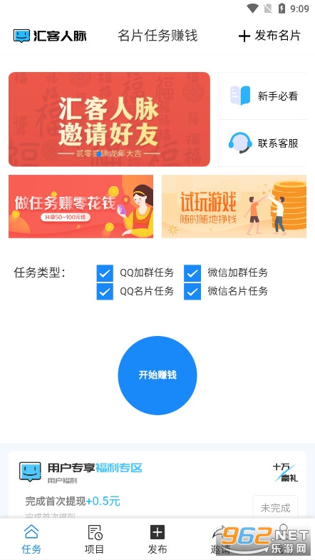 1、做任务:汇客人脉汇聚超多简单任务,你可以在汇客人脉简单赚取第一桶金。