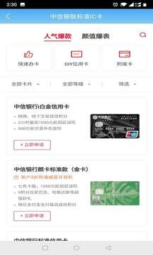 2、直接浏览热门的信用卡信息,就能快速的找到合适的信用卡