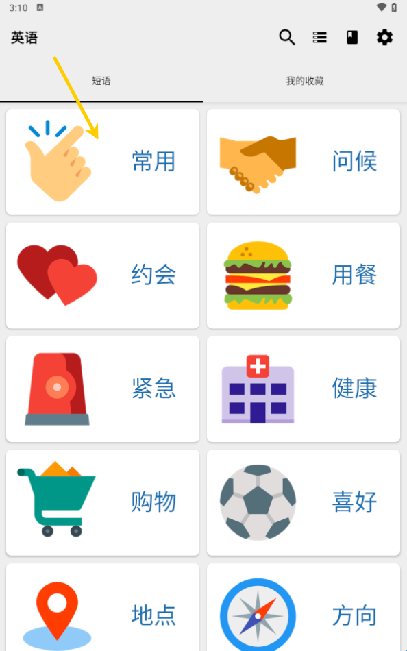 4、短语收藏:用户可以将自己喜欢的短语收藏起来,在收藏中能够查看到。