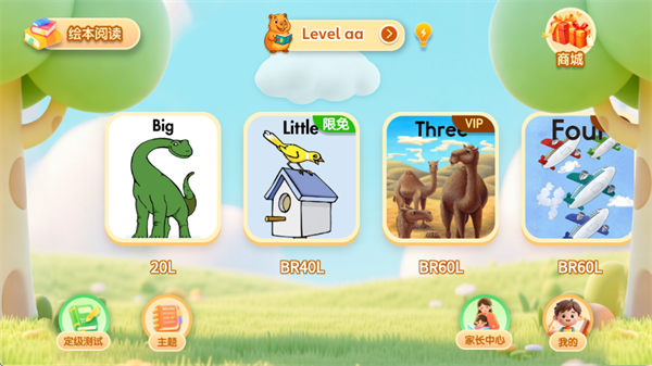 3、进入app可以进行绘本阅读,提供不同等级的绘本,还能进行定级测试;