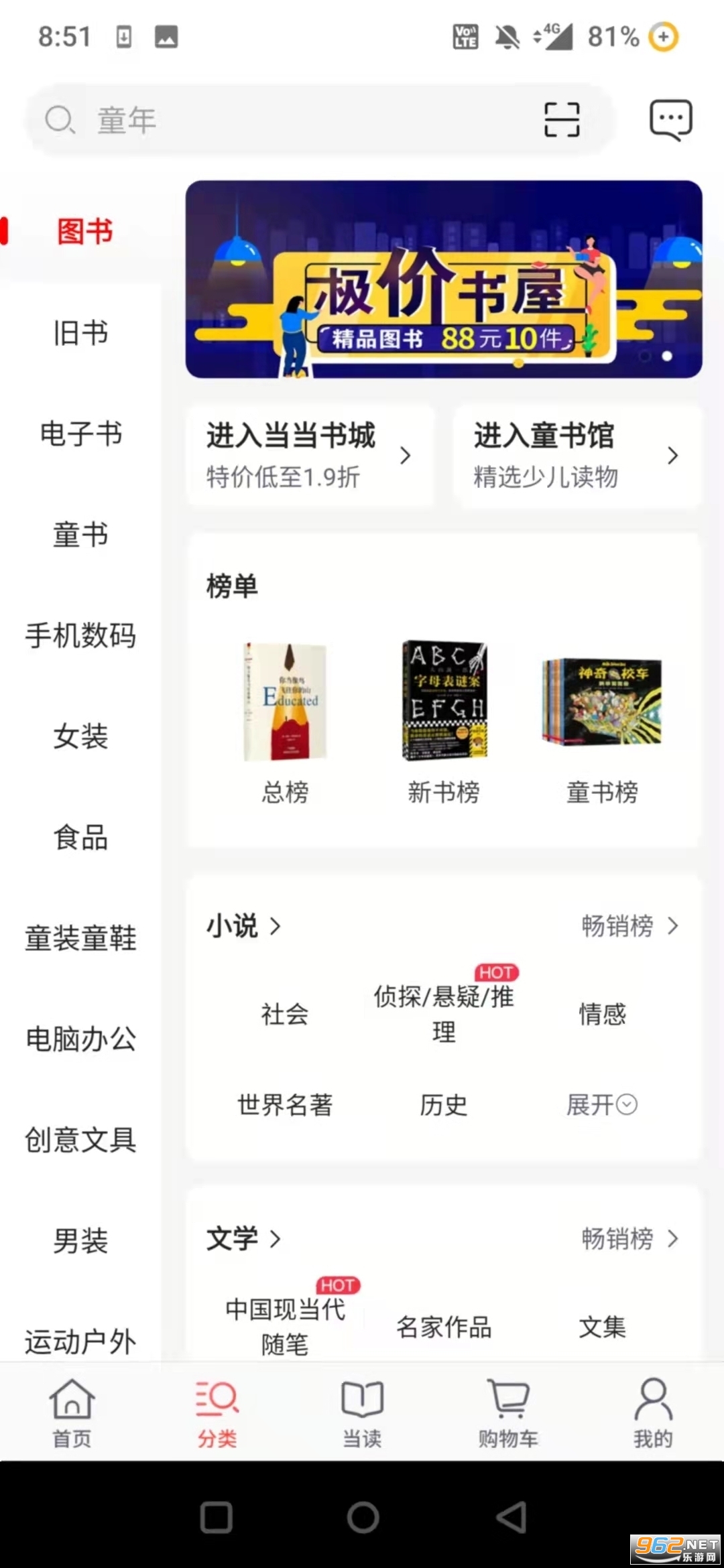 《当当书店网》一款有趣的综合性在线图书购物软件,全国最大的网上书店,满足了不同的风格和不同的阅读需求,你可以快速找到超多的图书,以优惠的价格进行购买,非常好用,快来下载试试吧!