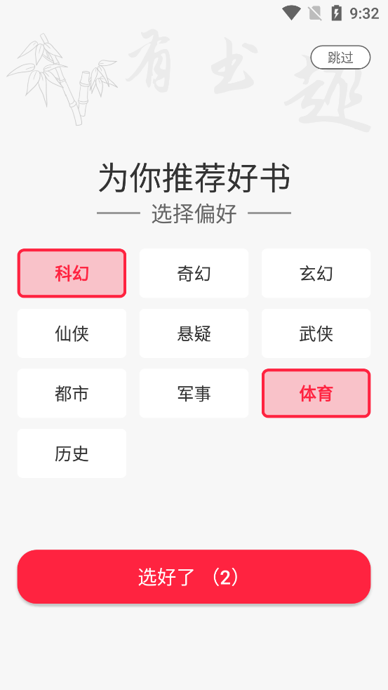 3、然后我们选择自己的阅读喜好,将会进行推荐