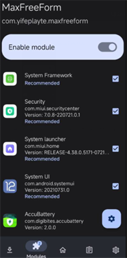 5、即,通过LSposed进行管理(譬如启用那个模块,模块要作用于那些app上)