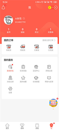 1、在应用商店下载并安装APP。使用账号或手机号登录,进入主界面,查看首页、榜单、商场和个人中心四个主要板块
