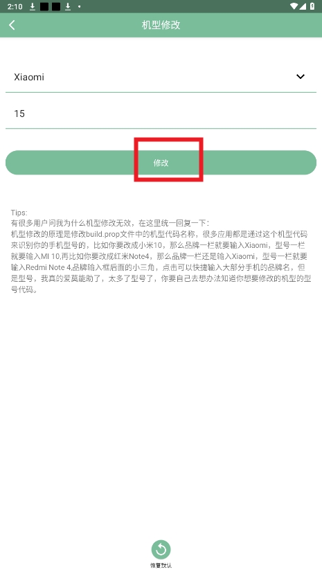 选择品牌,输入机型,点击修改