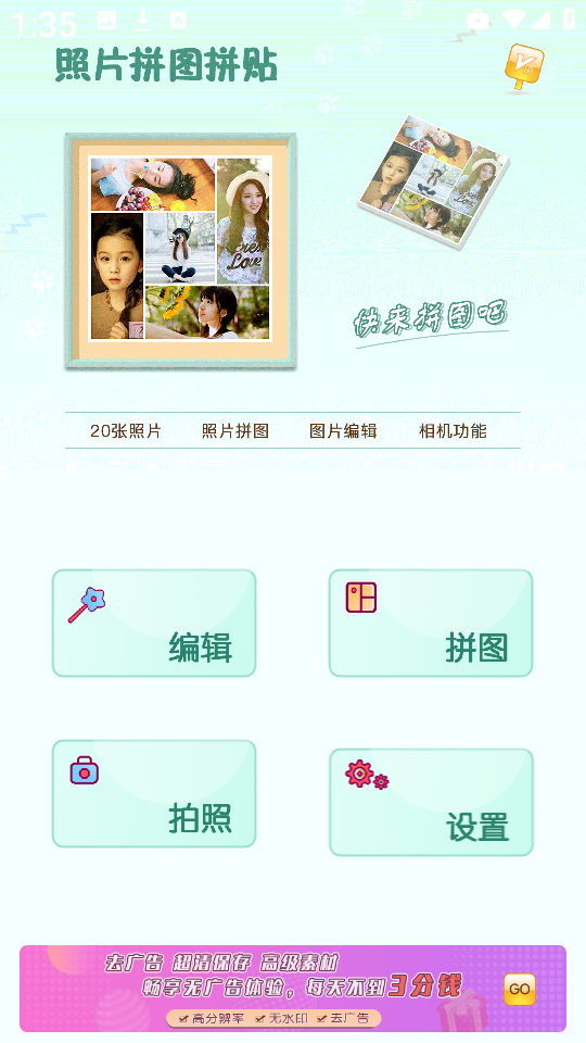 1、在本页面下载并安装照片拼图拼贴应用,完成后打开程序进入主界面。