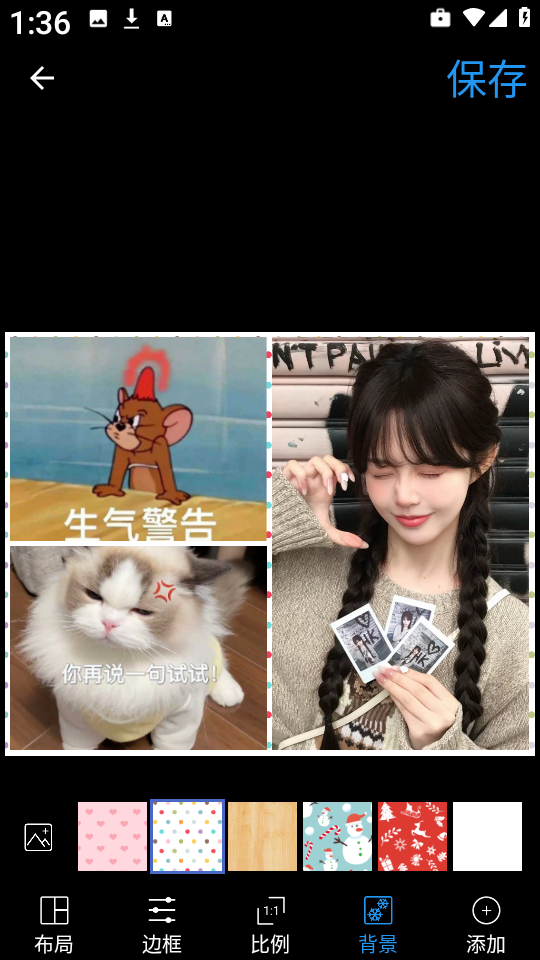 5、进入编辑界面后,可自定义设置拼图背景颜色,打造更具个性化的视觉效果。