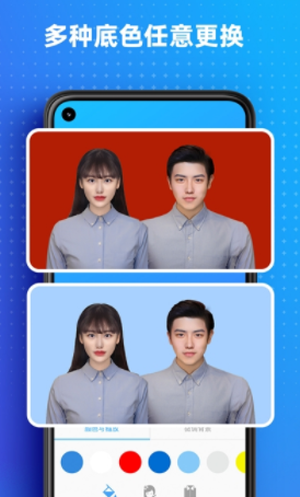 3.修改背景色,白色背景、蓝色背景、红色背景照片可自由更改,专业标准背景色使照片更符合要求。
