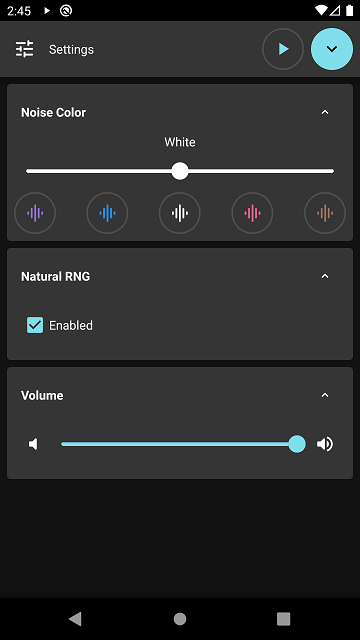 1、本应用可以生成各种颜色/类型的噪音,实时噪音生成器,没有预先生成的噪音文件。