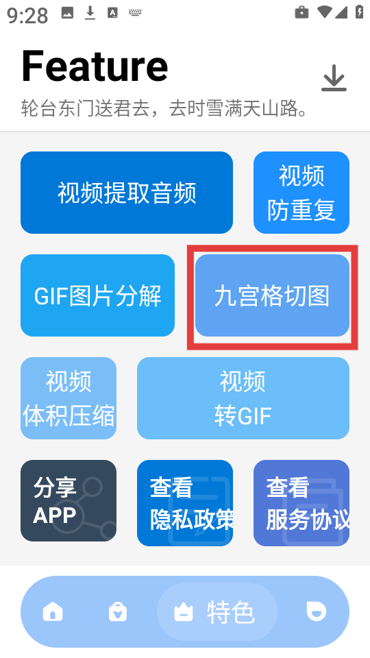 1. 进入APP后点击九宫图切图”入口;