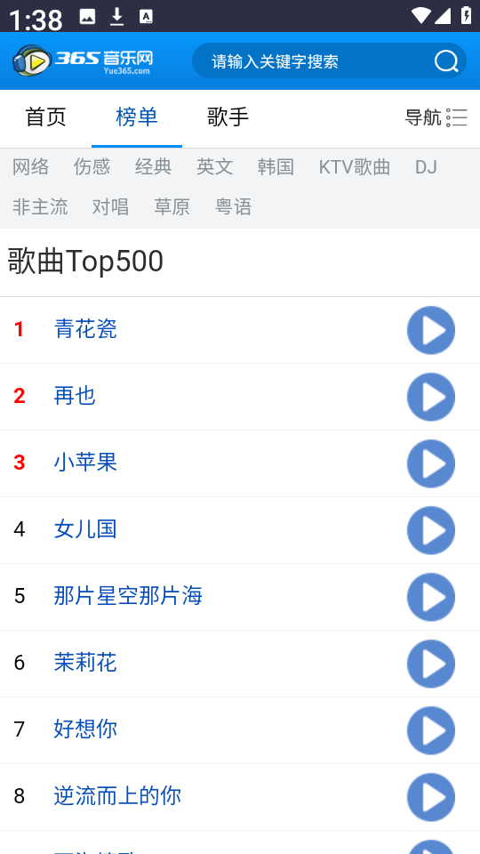 365音乐网,汇聚了海量曲库资源,涵盖流行热歌、欧美金曲、韩流音乐、对唱情歌等多种类型,满足不同用户的听觉需求。平台提供多档音质选择,搭配高效搜索功能,只需输入关键词即可快速定位心仪歌曲,全程免费畅听,无需任何充值或会员订阅。