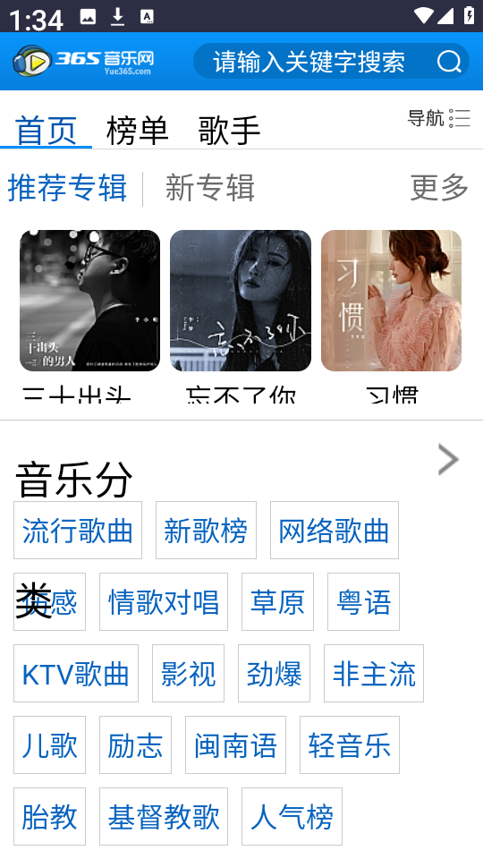 1、请在本页面完成365音乐网的下载与安装,启动应用后进入主界面。
