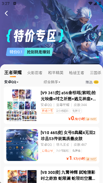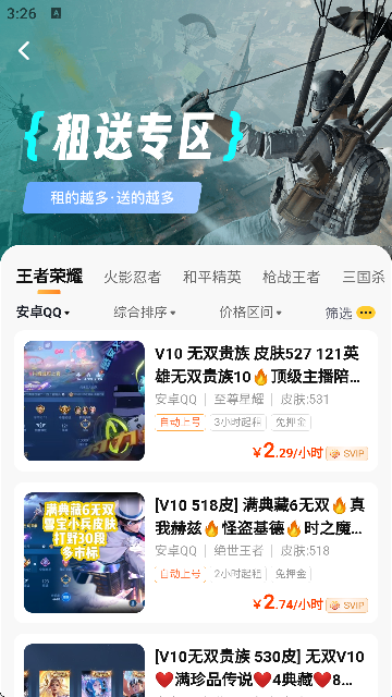 精准筛选:按游戏类型、价格、租期等条件快速筛选账号。