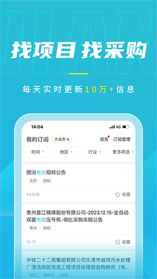 5.招标信息订阅:全国招标采购信息智能订阅,支持多种信息类型自由选择,+APP双平台为你实时推送.
