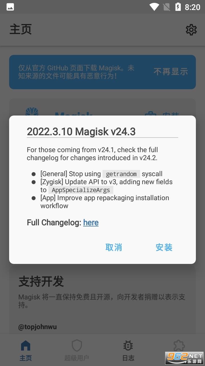 《手机面具》(Magisk)是一款最强root神器,用户可以通过手机面具软件轻松获取手机的root权限,进行刷机,自定义手机的相关功能,利用模块化的原理,对手机的相关功能进行修改,操作十分的方便,内存小,需要的朋友赶紧来下载吧!