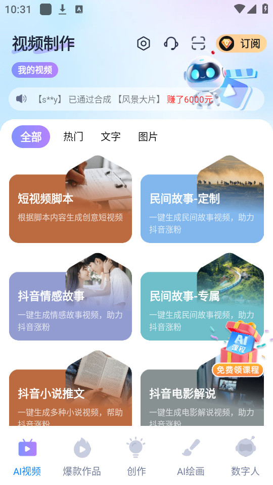 《开心创作》是一款非常实用的手机自动创作类的软件,可以访问各种创作工具和资源,从绘画和设计到音乐制作和视频编辑,满足您的创意需求。您可以在应用中找到教程,灵感和指导,帮助您更好地发挥您的创造力。如果您有创意并想要将其变成现实,开心创作App是您的理想选择。该应用程序提供了一个创意平台,让用户可以轻松地将他们的想法转化为现实作品。