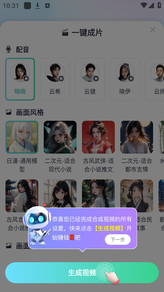 1、用户可以通过简单的一键操作,将小说转变成为动画视频解说。