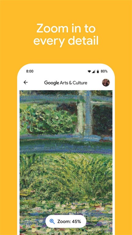 谷歌艺术与文化官方版英文名字叫做Arts & Culture app,谷歌艺术与文化app国际版顾名思义是谷歌开发的应用产品,一个关于艺术与文化的教育学习平台,您可以在这里欣赏历史上着名的艺术作品数字化,例如说绘画、雕塑、建筑等等,等等,我们致力于将现代科技融入传统文化之中,贴近生活贴近你,快来试试看!