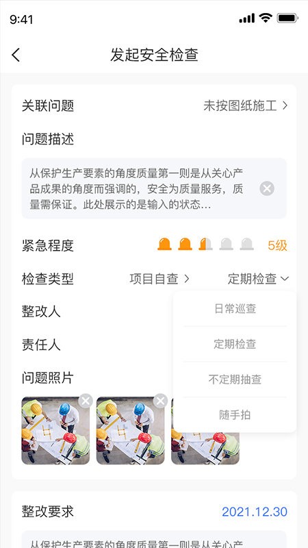 -质量安全检查:随时随地质检安检,闭环的审查处理流程,