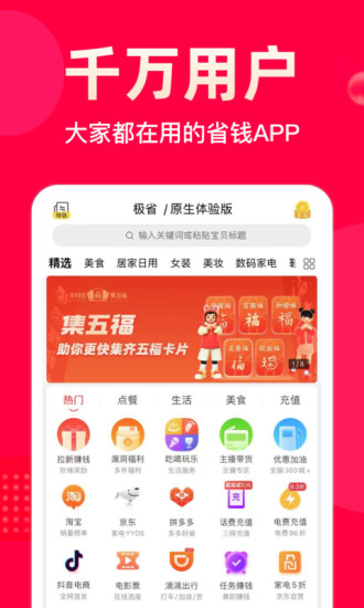 搜索找券 购物更优惠千万商品一键查询 买之前就来极省APP搜索优惠券!