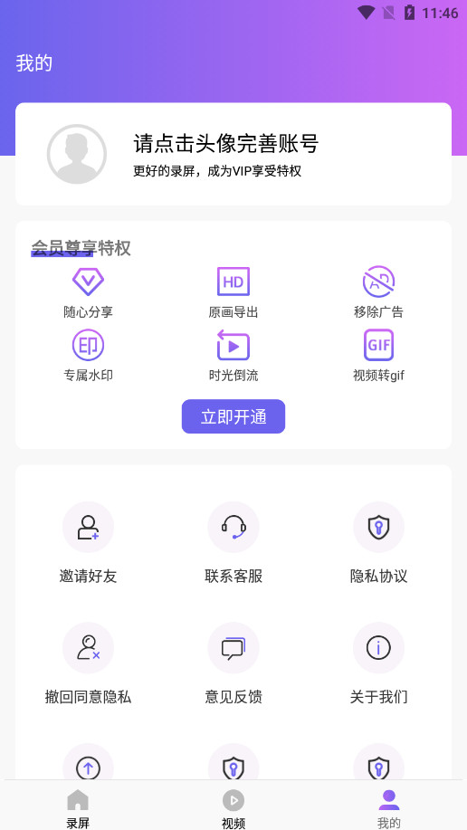 1、打开安装好的EV屏幕录制应用,仔细阅读用户协议和隐私政策,点选【同意并继续】进入。