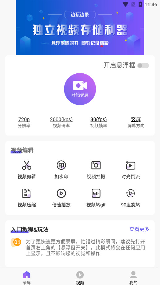 2、正式屏幕录制开始之前,需要获取开启悬浮框权限,点击【开始录屏】。