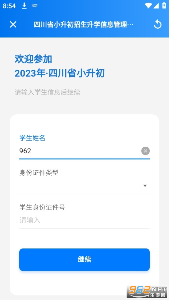 第一步:输入学生真实姓名、选择身份证件类型(居民身份证)、输入学生真实身份证件号
