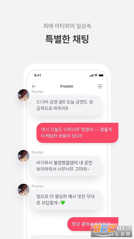 《Fromm for Arti》是一款专为追星用户打造的明星互动交流应用,旨在为粉丝提供与喜爱的明星实时沟通、获取独家动态的便捷平台。用户不仅能第一时间知晓韩流爱豆及偶像团体的最新资讯,还能通过订阅功能即时接收爱豆发布的动态,更有机会在线与明星进行互动交流,实现粉丝与偶像之间的近距离接触,同时支持自动翻译功能消除语言障碍,让互动体验更加顺畅。