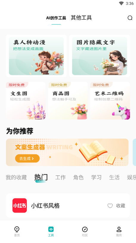 点击中间的文案生成器,去生成文案