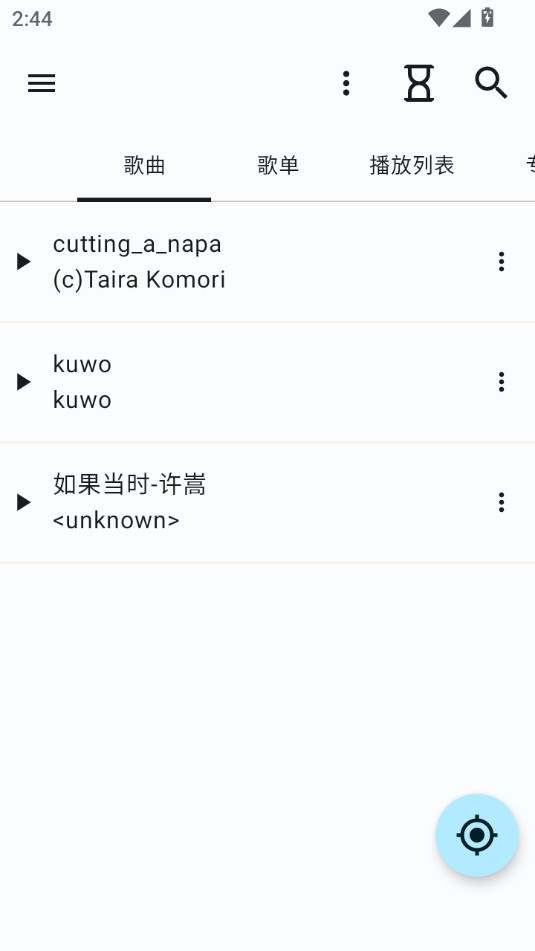 下载安装并打开小怪兽音乐app,歌曲界面会自动扫描你手机中的音乐,直接点击就能够进行播放