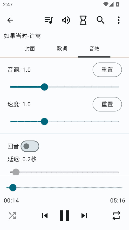 进入播放界面可以在上方对音效等进行调整