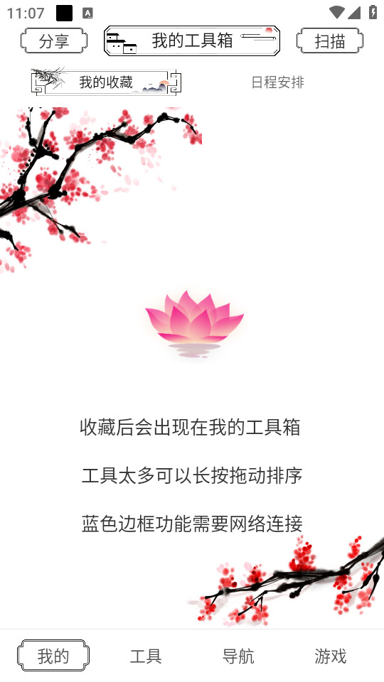 下载安装并打开荷花工具箱app,收藏了的工具就会出现在我的工具箱界面