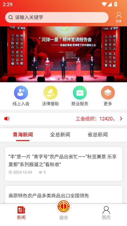 青海省总工会为职工打造的一款集思想引领、业务办理、工会活动、法律咨询、婚恋交友、就业服务等为一体的网上职工服务平台。通过该平台,职工可以方便地享受各项会员服务,参与在线学习和交友活动,提升自身素质和技能水平。同时,APP还提供了法律咨询和就业服务等实用功能,为职工提供全方位的服务保障。