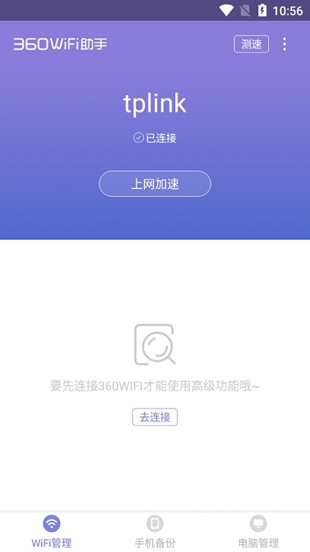360wifi助手手机版官方app最新版能够直接在手机上管理360随身wifi,支持对网速进行全方位的检测,上传下载速度以及网络延迟均可查,可以查看已经连接的设备,能够进行手机备份,轻松传输文件。